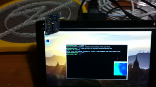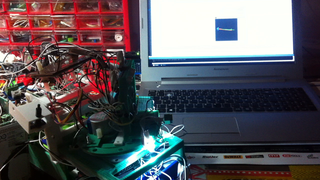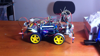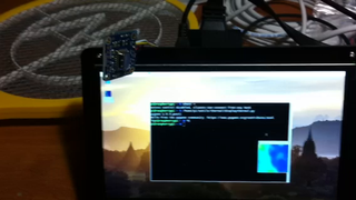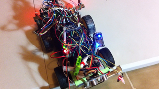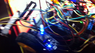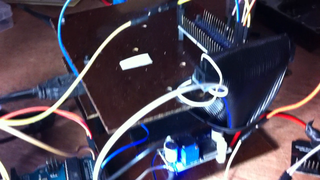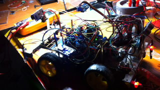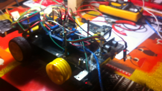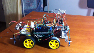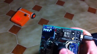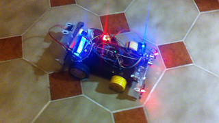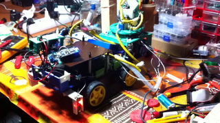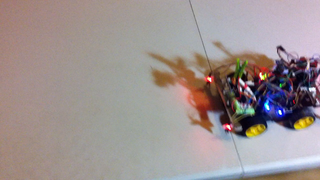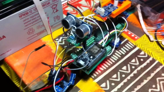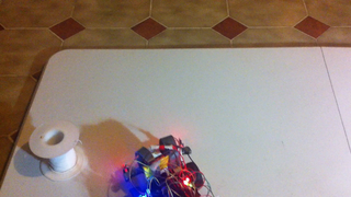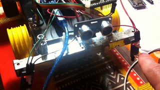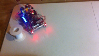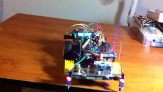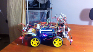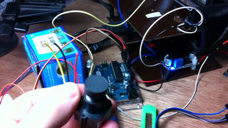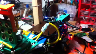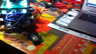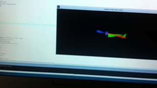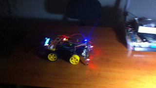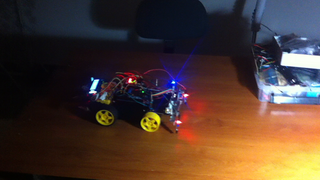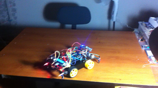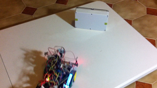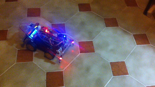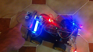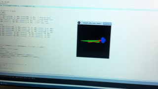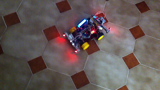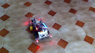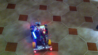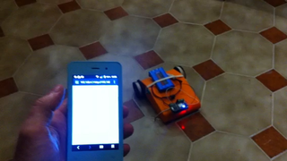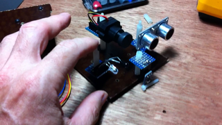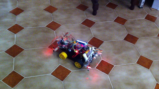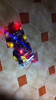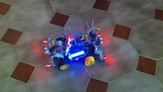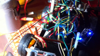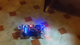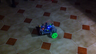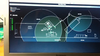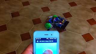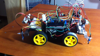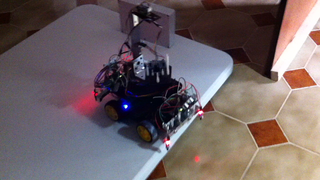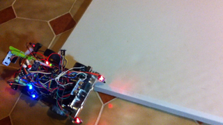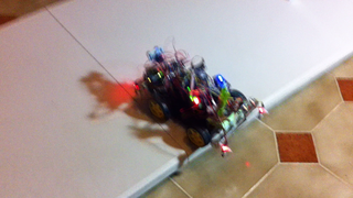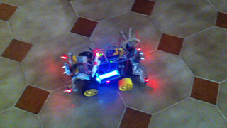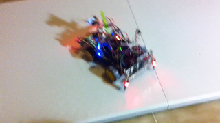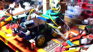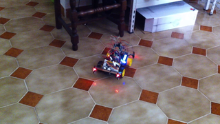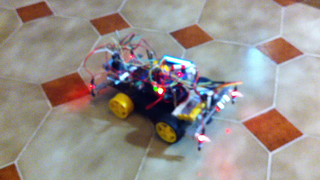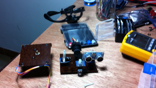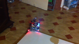 Il bouge et obéit à la télécommande wifi depuis le mobile Sur le PC par un autre lien wifi on voit la projection pseudo 3d du scan des radars et de l'horizon artificiel | ![]() ![]() ![]() ![]() | |